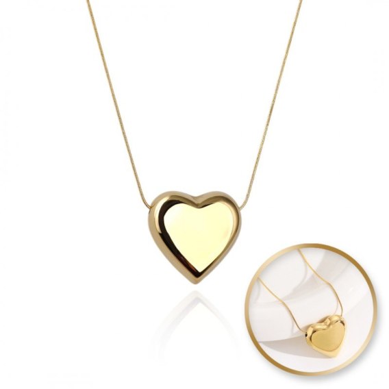 Naszyjnik SERCE stal szlachetna pozłacana 14k złotem, żyłka NST2177