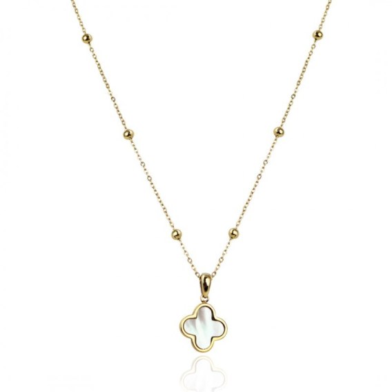 Naszyjnik stal szlachetna pozłacana 14k złotem, koniczynka, masa perłowa NST2187