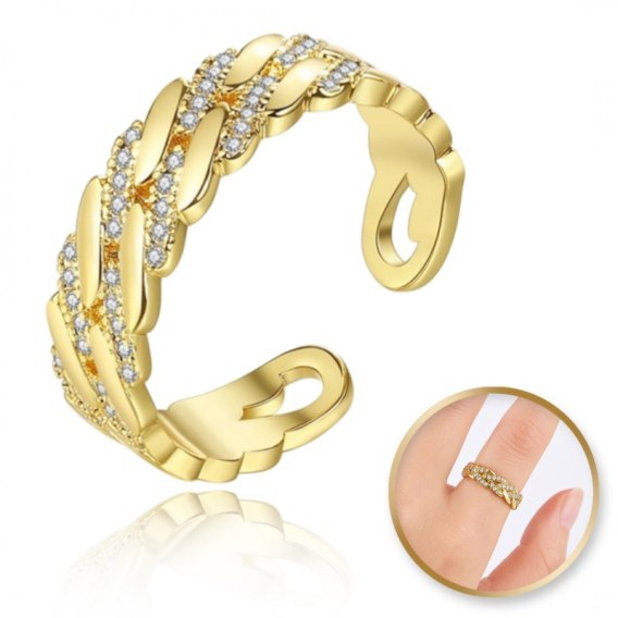Pierścionek stal chirurgiczna platerowana złotem regulowany, z cyrkoniami PST935